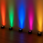 Kompakte Akku-Scheinwerfer für stimmungsvolle Akzentbeleuchtung bei Events. Mit Fernbedienung und Musiksteuerung. Wasserfest, mindestens 14 h Laufzeit, kinderleichter Aufbau. Ideal für Ambiente-Licht.